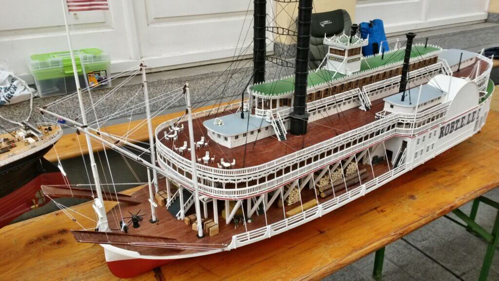 Abweichend vom Original sind Hilfsantrieb und Querstrahlruder eingebaut.Das Schiff Robert E. Lee, auch…