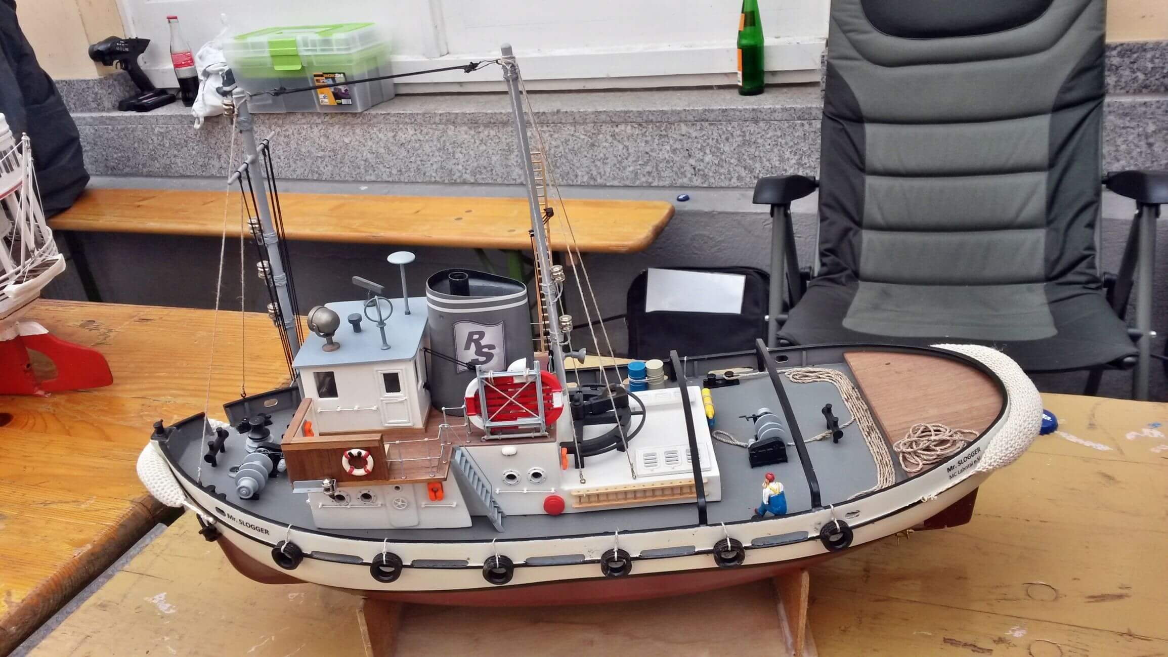 Das Modell wurde neu aufgebaut. Der Ursprung des Dachbodenfundes konnte nicht ermittelt werden, daher wurde „Mr. Slogger“ nach Vorbildern aus der Zeit um 1930/40 nachgebaut.